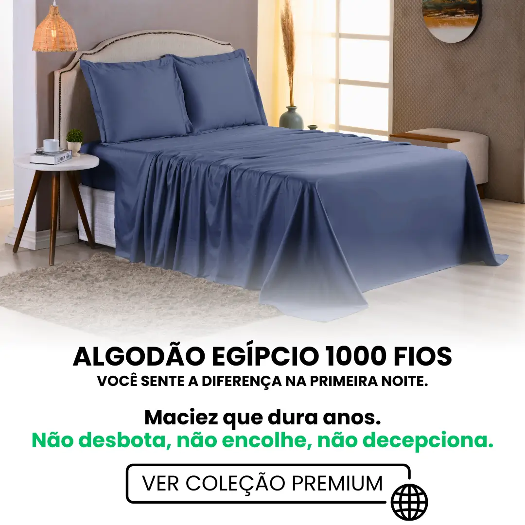 Algodão egípcio, 600 fios. Durabilidade comprovada.
